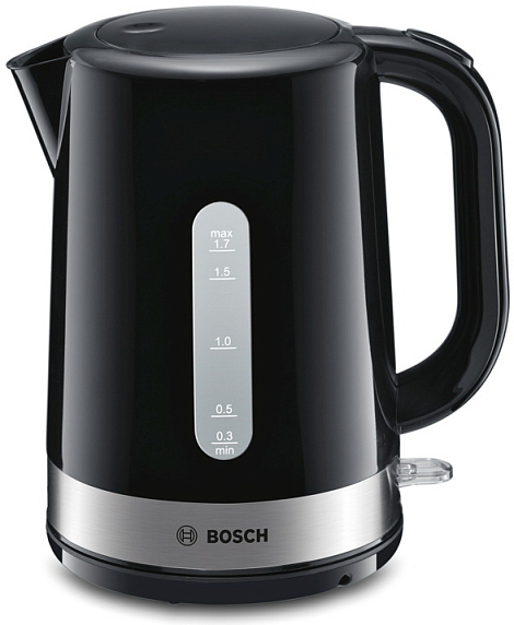 Вместительный чайник Bosch TWK 7403 выполнен из качественного пластика с элементами из нержавеющей стали. Индикация включения просигнализирует о работе прибора.