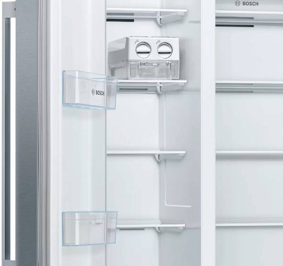 В целом, холодильный шкаф от Bosch демонстрирует высокое качество и надежность, что является залогом его долговечности. Техника этого бренда всегда отличается превосходной работой и продуманным дизайном, удовлетворяя потребности даже самых взыскательных пользователей. Этот Side-by-Side обладает электронным управлением, что значительно облегчает его использование. Элементы управления выполнены в виде сенсорных кнопок, что придает модели современный и стильный вид. Кроме того, наличие дисплея позволяет легко контролировать и регулировать все необходимые параметры работы девайса. Продуманный дизайн и высокая функциональность делают это изобретение незаменимым помощником на кухне. Он не только обеспечивает оптимальные условия для хранения продуктов, но и становится настоящим украшением интерьера благодаря своему элегантному внешнему виду.