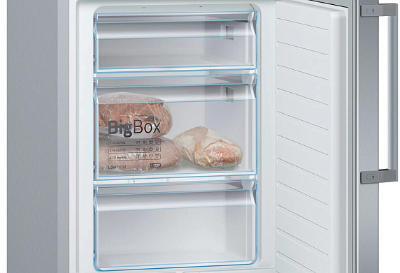 Двухкамерный холодильник Bosch KGE398IBP оснащен системой VitaFresh она сохраняет свежесть продуктов при 0°C температуре. В морозильной камере имеется ящик Big Box в него поместится даже большой торт. Суперзаморозка Super Freeze помогает быстро заморозить новые продукты и регулирует температуры для лучшего сохранения холода.