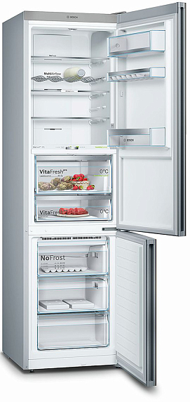 Лампы светодиодной подсветки не загораживаются продуктами и ярко освещают содержимое холодильной камеры. Система NoFrost защищает прибор от образования льда, благодаря чему устройство не требует разморозки.