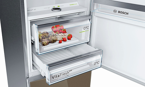 Особенности: точная настройка температуры между −1°C и +3°C, ящик для хранения овощей/фруктов с 3 уровнями влажности, один большой ящик для хранения рыбы/мяса с сухой зоной.