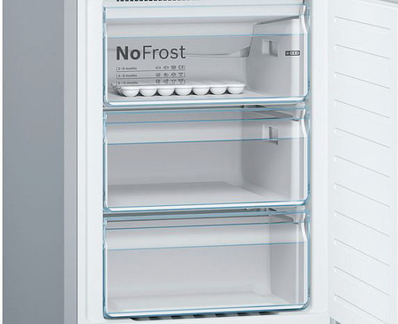 Благодаря яркому светодиодному освещению все готовые блюда на полках хорошо просматриваются. Данная модель предусматривает в себе систему NoFrost, что позволяет не размораживать устройство за весь период пользования.