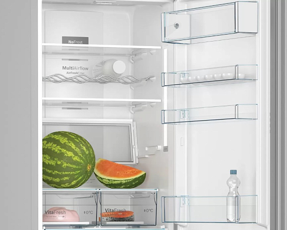 Bosch KGN39IJ22R — двухкамерный холодильник, который подстраивается под вас! Полка Garage Shelf может складываться полностью, чтобы вы смогли поставить большую кастрюлю или арбуз.