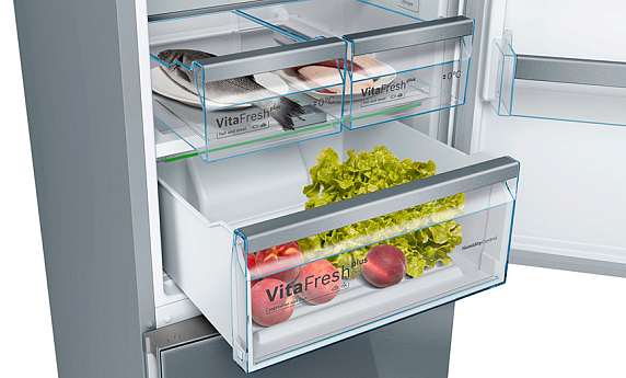 Зона VitaFresh Plus увеличивает свежесть не только овощей и фруктов, но и мяса и рыбы. Система NoFrost предотвращает образование льда внутри камер, поэтому прибор не требует разморозки.