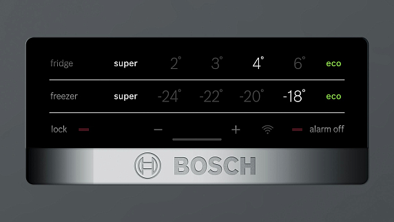 Двухкамерный холодильник Bosch KGN39VC2AR редкого оттенка «чугун» — модель с системой охлаждения NoFrost и зоной свежести VitaFresh. Прибор не нуждается в разморозке. Имеет одно из самых больших холодильных отделений 290 л среди 2-метровых холодильников своего класса. Раздельная установка температуры в холодильном и морозильном отделении производится при помощи дисплея на дверце. В ящике HyperFresh с регулировкой влажности и волнистым дном фрукты и овощи остаются свежими дольше.
