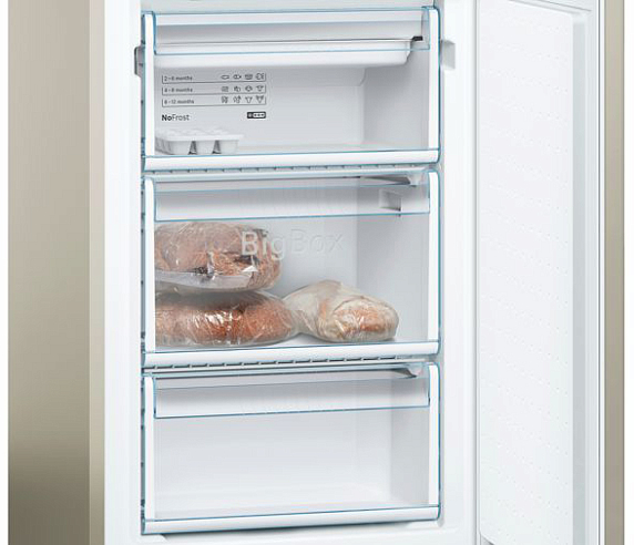 Двухкамерный холодильник Bosch KGN39VK16 выполнен в бежевом цвете. Регулировка и контроль температуры с точностью до 1 градуса Цельсия позволит подобрать оптимальную температуру для хранения любых продуктов. Технология NoFrost предотвращает образование льда внутри прибора — это означает, что размораживать устройство не нужно. Комфорт пользования повышают возможность перевешивания двери и удобные ручки.