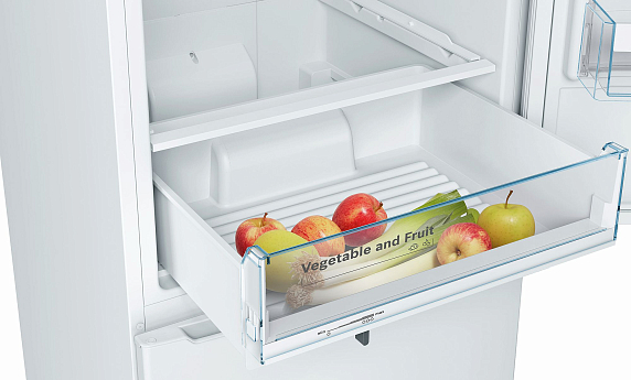 - зона свежести укомплектована выдвижным контейнером VitaFresh. Волнистое дно обеспечивает стекание конденсата без его дальнейшего контакта с овощами или фруктами. Постоянно поддерживаемая влажность надежно сохраняет их вкус и препятствует преждевременному увяданию.
