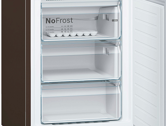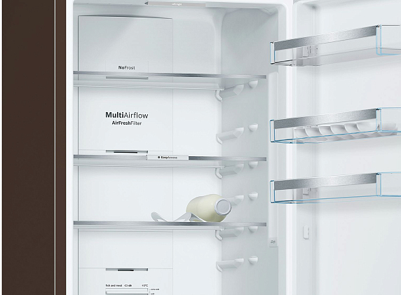 Двухкамерный холодильник Bosch KGN39XD3AR выполнен в темно-коричневом цвете. Благодаря классу энергопотребления A++, прибор позволяет экономить электроэнергию, потребляя на 20% меньше, чем устройства А класса. Зона VitaFresh с настройкой влажности, предусмотренная в этой модели, содержит не только ящик для овощей и фруктов, но также для рыбы и для мяса, увеличивая их срок годности почти в 2 раза. С помощью сенсорных элементов управления можно комфортно задать оптимальные условия хранения для любых продуктов.
