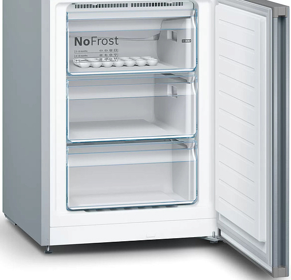 Внутреннее освещение холодильной камеры выполнено на светодиодах, что обеспечивает яркий и равномерный свет. В морозильной камере предусмотрено 3 ящика, что позволяет удобно разместить замороженные продукты.
