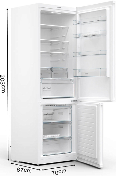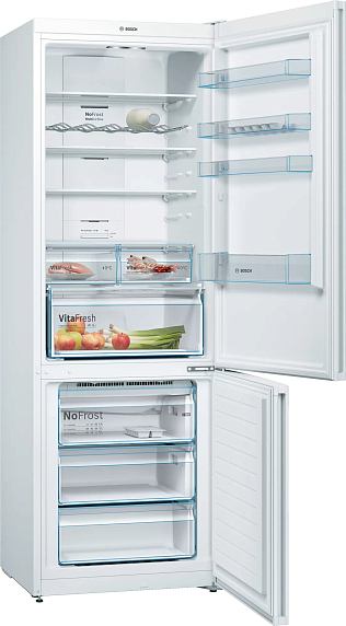 Двухкамерный холодильник Bosch KGN49XWEA имеет систему No Frost, она поддерживает постоянный поток сухого воздуха и предотвращает образование льда, вы можете забыть о размораживании холодильного и морозильного отделения. Выдвижная полка EasyAccess удобна, если холодильник полностью укомплектован. Имеется зона свежести прожуктов VitaFresh в ней удобно хранить свежую рыбу, мясо, овощи и фрукты до 0°C.