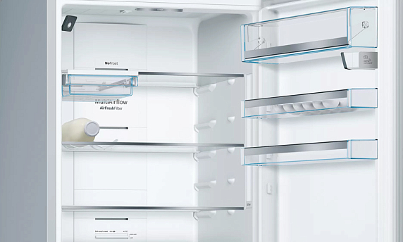 Двухкамерный холодильник Bosch KGN56HI30M оснащен полкой EasyAccess, она выдвигается из устройства, благодаря ей вы легко получаете доступ к продуктам. Ящик BigBox расположенный в морозильной камере позволяет хранить, даже большой торт или пиццу. Home Connect позволяет отслеживать состояние вашего прибора удаленно с вашего смартфона.