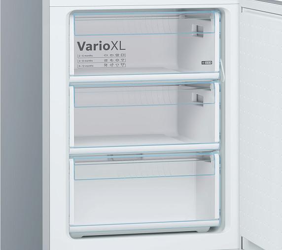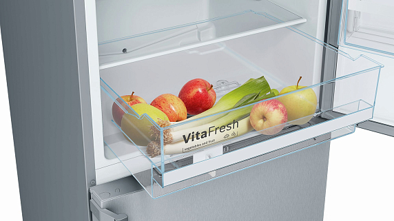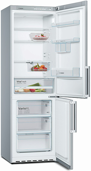 Двухкамерный холодильник Bosch KGV36XL2O — стильная модель, окрашенная под нержавеющую сталь с алюминиевыми накладными ручками. Благодаря системе охлаждения LowFrost и технологии NatureCool во внутреннем пространстве поддерживается оптимальная влажность и при этом в морозильнике образуется совсем немного льда. Эффективное светодиодное освещение рассчитано на весь срок службы прибора.