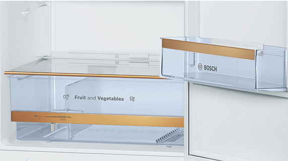 Встроенная светодиодная подсветка долговечна и отличается нулевой температурой. Контейнер для овощей и фруктов с регулировкой влажности позволяет сохранять продукты дольше в свежем состоянии.