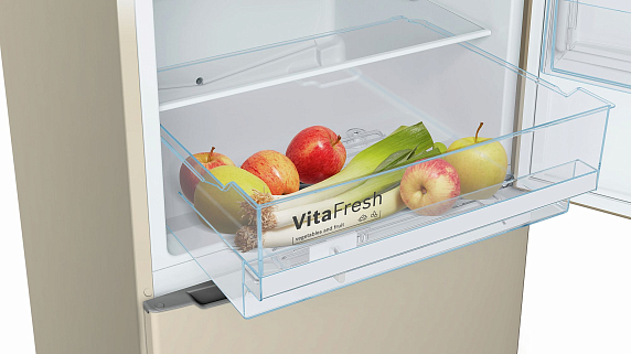Двухкамерный холодильник Bosch KGV39XK22 высотой 2 м — вместительная модель бежевого цвета с нижней морозильной камерой. Технология NatureCool обеспечивает оптимальную влажность в рабочей камере и позволяет продлить естественную свежесть продуктов.
