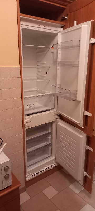 Система охлаждения No Frost предотвращает образование инея и обеспечивает равномерное распределение холода по всему объему холодильной камеры. Автоматическая система размораживания облегчает уход за устройством, а функция суперохлаждения позволяет быстро охладить продукты после покупки. Внутреннее пространство холодильника продумано до мелочей. Четыре полки из высокопрочного стекла, три из которых можно регулировать по высоте, позволяют оптимально распределить продукты. Выдвижной контейнер MultiBox идеален для хранения овощей и фруктов, а три полки на дверце обеспечивают дополнительное пространство для хранения. Светодиодное освещение обеспечивает яркий и равномерный свет, позволяя легко найти необходимые продукты.