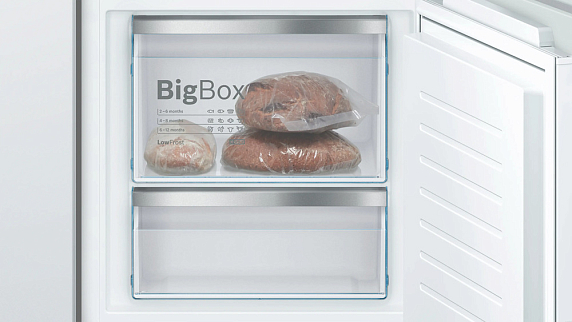 Особенности: настройка температуры около 0°C, ящик для хранения овощей/фруктов с 2 уровнями влажности, 2 ящика для хранения рыбы/мяса на специальных направляющих, которые можно выдвигать оба одновременно или по отдельности.