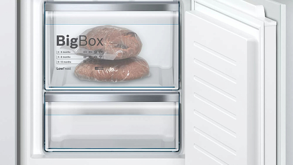 - Два ящика для удобного хранения замороженных продуктов, включая просторный ящик BigBox для крупногабаритных предметов;