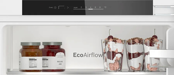 Встраиваемый однокамерный холодильник Bosch KIR31VFE0 имеет объём 165 л, где размещены четыре надёжные полки из высокопрочного стекла, из которых три регулируемые и одна фиксированная, что даёт свободу расположения и помогает оптимизировать размещение посуды и упаковок различной высоты. Выдвижной контейнер MultiBox с прозрачными стенками создан для хранения овощей и фруктов с комфортным доступом, а отдельная полка для бутылок и три отделения на дверце обеспечивают порядок и удобство при хранении контейнированных напитков и соусов. Светодиодное освещение эффективно освещает пространство, снижая нагрузку на глаза и облегчая поиск нужного продукта.
