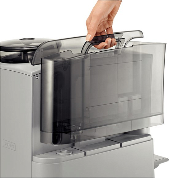Прибор оснащен контейнером для кофе в зернах с изоляцией, которая снижает уровень шума при работе устройства. Есть также емкость для молотого кофе. Съемный лоток для сбора капель, контейнер для кофейной гущи и контейнер для воды объемом 1.7 литра обеспечивают удобство и простоту очистки. В комплекте идет мерная ложка и тест-полоска для определения жесткости воды.