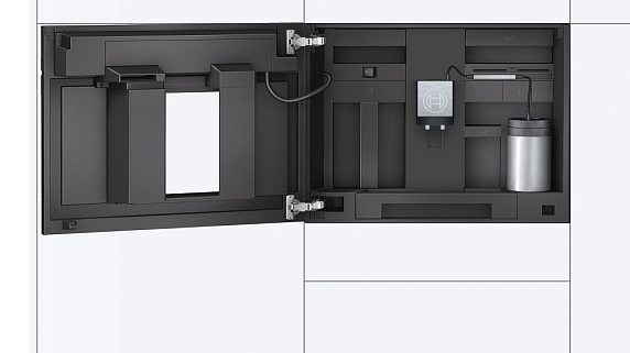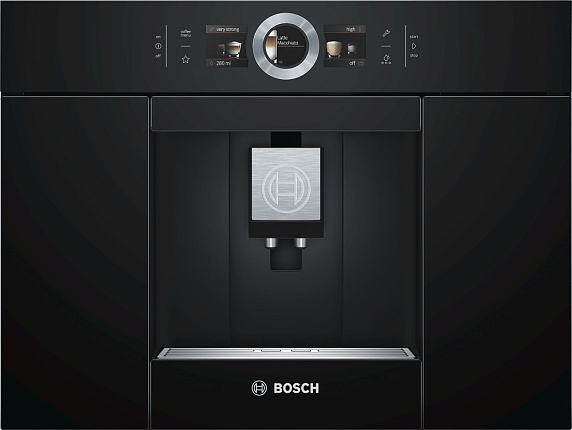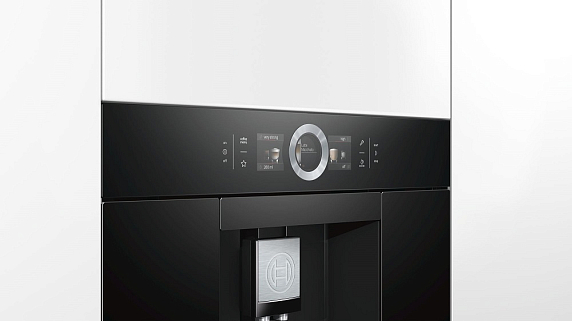 Эта встраиваемая модель от известного бренда выпущена в рамках их премиальной серии Serie | 8. Она выполнена в строгом черном цвете, а корпус изготовлен из пластика, что делает ее достаточно легкой и удобной в эксплуатации. Особенностью техники является регулируемая высота дозатора кофе, что позволяет подобрать оптимальную высоту под любую посуду. Также стоит отметить наличие регулируемой высоты капучинатора, что дает возможность получить идеальную пену для вашего капучино. Приятным бонусом является подсветка, которая делает процесс приготовления кофе еще более комфортным и удобным.