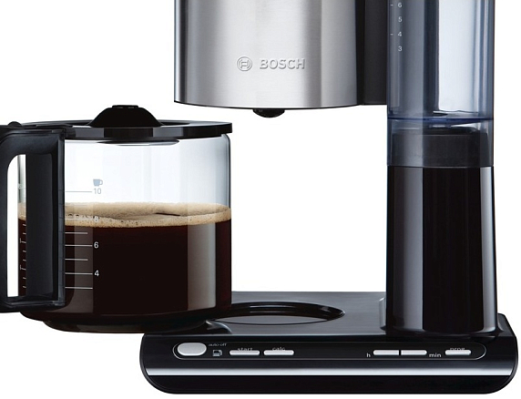 Кофеварка BOSCH TKA 8633 — модель черного цвета с элементами нержавеющей стали. Такая модель занимает одно из первых мест по популярности среди электрических кофеварок, благодаря компактным размерам, небольшой цене и простоте использования.