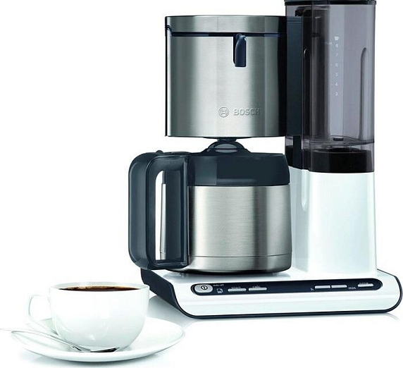 Кофеварка Bosch TKA 8A681 выполнена в бело-серебристом цвете. Благодаря оптимальной комбинации температур приготовления и подогрева кофе позволяет добиться превосходного вкуса и аромата. Автоматическое отключение добавляет удобства использования. Прозрачный, съемный резервуар для воды с встроенной ручкой и индикатором уровня находится на площадке для подогрева.