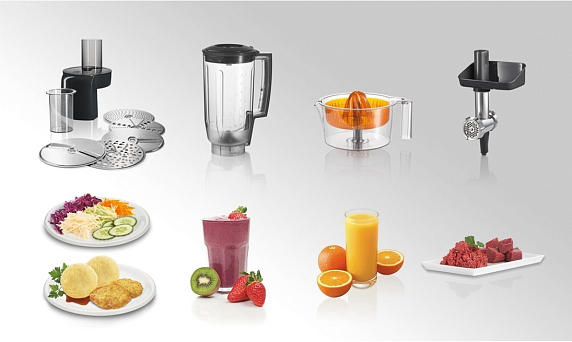Кухонный комбайн MUM 57860 — это прогрессивные технологии и современный дизайн. Черный цвет корпуса с панелью под нержавеющую сталь смотрится стильно и эстетично. В комплект входят разнообразные насадки, что расширяет возможности модели. Автоматическое поднятие рычага одним нажатием кнопки обеспечивает быструю и удобную смену насадок.