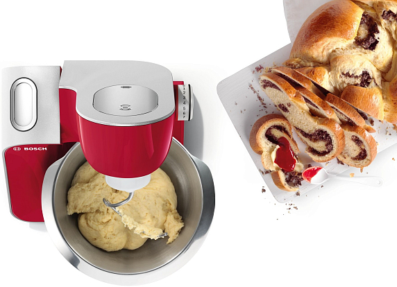 Кухонный комбайн Bosch MUM 58720 — яркая многофункциональная модель. Комплект кондитерских насадок и вместительная чаша из нержавеющей стали позволяют замешивать до;2,7 кг легкого или 1,9 кг дрожжевого теста. Универсальная резка с тремя дисками предназначена для натирания и шинковки различных овощей, сыра, шоколада, орехов. В блендере можно взбить ингредиенты для смузи, мороженого. Семиступенчатая регулировка скорости и импульсный режим созданы для работы с разными видами продуктов.