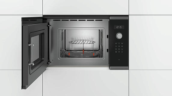 Микроволновая печь Bosch BEL524MS0 выполнена в черном цвете, а ее грани — в цвете «Нержавеющая сталь», модель прекрасно дополнит любой интерьер. Данное оборудование — стильное и компактное решение не только для быстрого разогрева обедов и ужинов, но и для приготовления полноценных блюд и деликатного размораживания полуфабрикатов. В 20-литровой камере достаточно места и для пышного пирога, и для целой курицы.