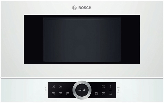 Встраиваемая микроволновая печь BFL634GW1 в белом исполнении — изысканная модель от Bosch.