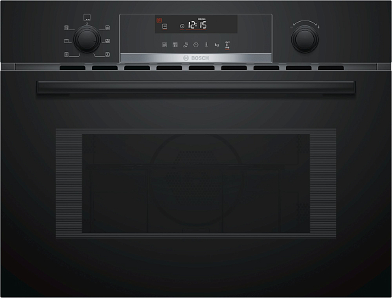Встраиваемая микроволновая печь Bosch CMA585MB0 выполнена в черном цвете и предусматривает в себе 15 встроенных программ для приготовления разнообразных продуктов — от картофеля до мясного рулета.