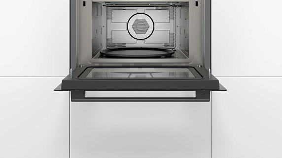 Режим конвекции или принудительной циркуляции воздуха делает блюда еще полезней и аппетитнее. Во-первых, он обеспечивает отвод влаги с поверхности продукта для скорейшего появления хрустящей корочки, под которой лучше сохраняются витамины и другие микроэлементы. Во-вторых, горячие воздушные потоки обдувают блюдо со всех сторон, делая нагрев более равномерным. Сочетание гриля и конвекции позволяет приготовить блюда с помощью микроволновой печи Бош CMA585MB0 еще быстрее.