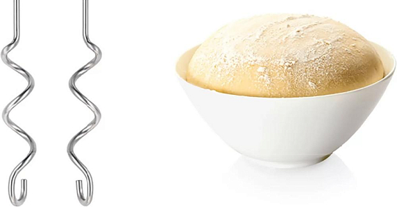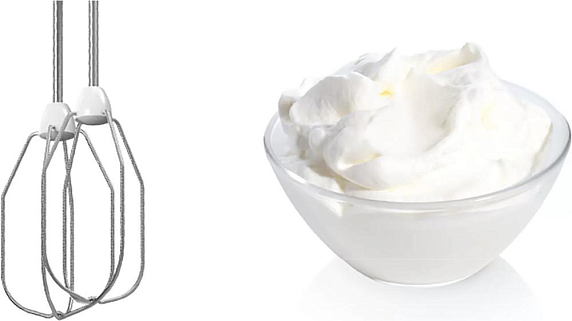 Ручной миксер MFQ 3030 оснащен двумя комплектами насадок: венчиками для взбивания и крюками для замешивания теста
