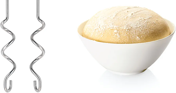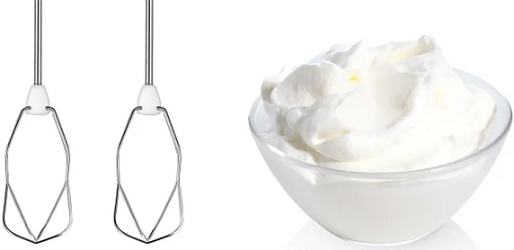 В комплекте с миксером идут два типа насадок: два венчика для взбивания и два крюка для теста. Это делает его универсальным инструментом, способным справиться с любыми кулинарными задачами, будь то приготовление пышного бисквита или замес теста для домашнего хлеба.