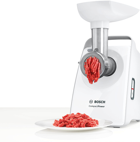 Мясорубка Bosch MFW 3540 W из линии Compact Power — компактная многофункциональная модель с насадками для приготовления кеббе, колбас и фарша, а также специальными терками для шинковки овощей. Продуманная конструкция позволяет быстро собирать и разбирать прибор.