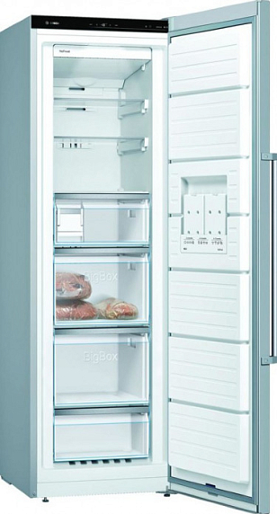 Отдельностоящий морозильник Bosch GSN36VL3PG оснащен системой NoFrost лишняя вода не оседает на стенках и не превращается в наледь. Режим Суперзаморозка быстро замораживает овощи и фрукты и сохраняет их полезные свойства. FreshSense сохраняет продукты свежими, благодаря сенсорной системе электронных модулей, которые постоянно контролируют внешнюю и внутреннюю температуру камеры.