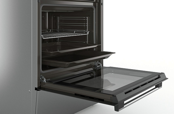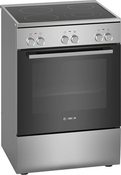Плита Bosch HKA090150 представлена в цвете «нержавеющая сталь». Варочная поверхность выполнена из стеклокерамики, которая устойчива к воздействию высоких температур и поэтому долговечна. Данная модель комплектуется одной двухконтурной конфоркой. С ее помощью можно выбирать большую или меньшую зону нагрева в зависимости от диаметра используемой посуды, что также позволяет экономить электроэнергию. Среди различных 7 режимов предусмотрены программы «Для пиццы» и «Нижний жар», идеально подходящие для пирогов и печенья.