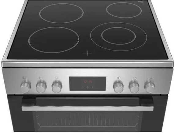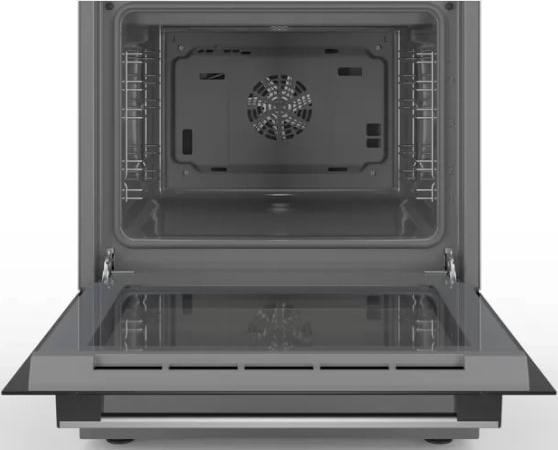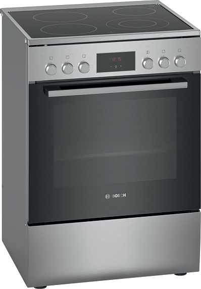 Электрическая плита Bosch HKQ38A150M представлена в цвете «нержавеющая сталь». Имеет поворотные утапливаемые и сенсорные переключатели с небольшим дисплеем. В электрической духовке объемом 66 л можно запекать мясо с хрустящей корочкой при помощи функции «Гриль». Варочная поверхность из стеклокерамики имеет 4 конфорки, одна из котороых двухконтурная, что предоставляет большой выбор посуды разного диаметра.