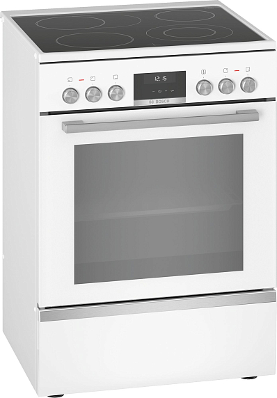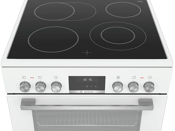 Электрическая плита Bosch HKS59N220R представлена в белом цвете. Благодаря индикации остаточного тепла, неостывшие конфорки легко определяются и на них, к примеру, можно подогреть уже готовые блюда, что позволяет экономить электроэнергию. Духовой шкаф оснащен 8 режимами нагрева, в числе которых «гриль с конвекцией» и «разморозка», прекрасно подходящая для быстрого и бережного размораживания овощей, фруктов и десертов. Система EcoClean гарантирует легкий уход за камерой, тем самым увеличивая комфорт эксплуатации.