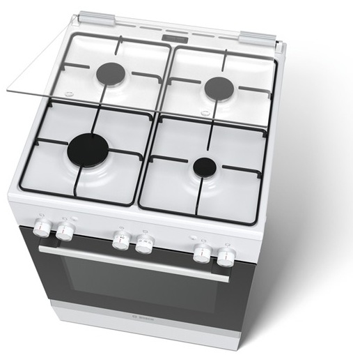 Газовая плита HGA 233220 R в белом исполнении гармонирует с любым цветовым решением кухни. Стеклянная крышка варочной панели защищает стену от попадания жира и других загрязнений. Большой объем духовки позволяет готовить на нескольких уровнях одновременно. Гриль расширяет возможности приготовления. Внутреннее освещение создает дополнительный комфорт использования.
