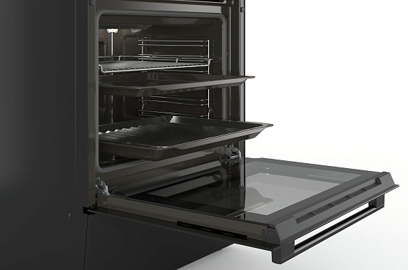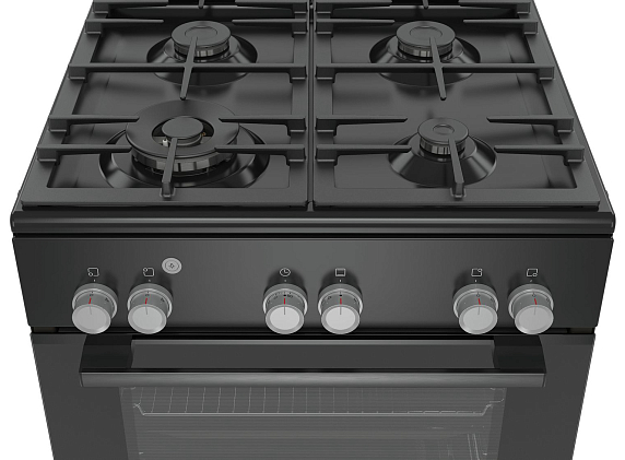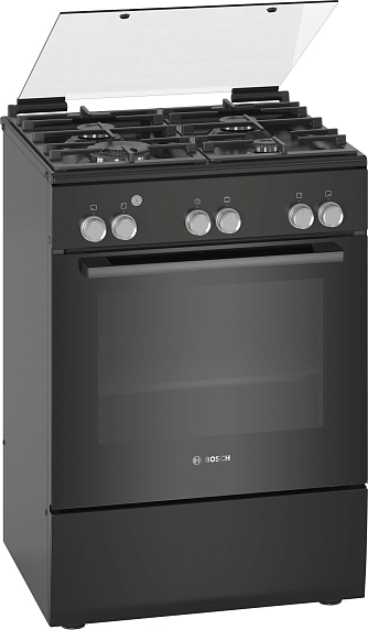 Плита Bosch HGL128I60R представлена в черном цвете. Прибор оснащен четырьмя газовыми конфорками разной мощности, в том числе экономичной и WOK, с помощью которой, например, можно быстро и качественно нагреть крупногабаритную посуду. Камера большого объема (71 литр) позволяет комфортно готовить различные блюда на нескольких уровнях сразу. Газ-контроль гарантирует безопасность эксплуатации — система перекроет подачу газа, если пламя случайно погаснет.