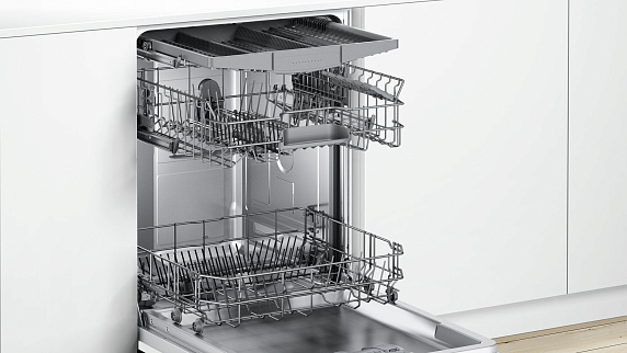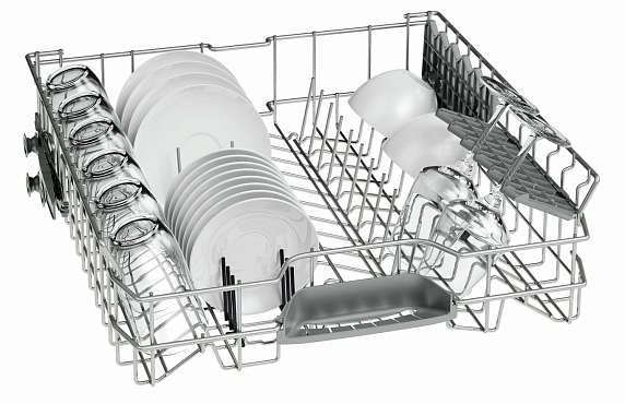Посудомоечная машина Bosch SBV45FX01R обладает функцией IntensiveZone, благодаря которой даже сильно загрязнённая посуда станет чистой. Система ActiveWater подаёт струи воды определённой направленности, что позволяет промыть труднодоступные места. Во время работы ночной программы шум прибора снижается и не потревожит ваш сон.
