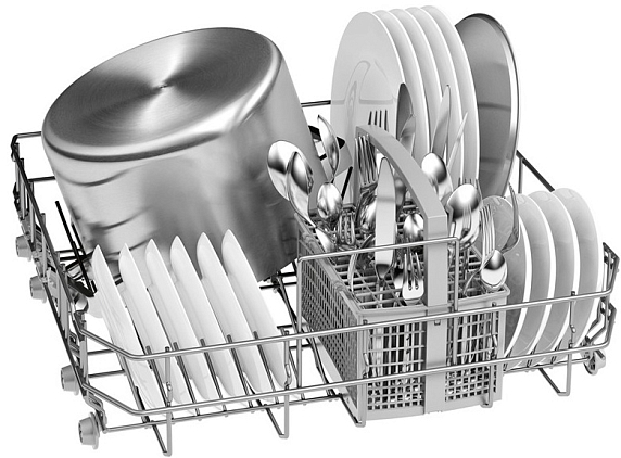 Отдельностоящая посудомоечная машина SMS 40L08 RU с системой Rackmatic обеспечивает дополнительное пространство для большой посуды. Инверторный двигатель отличается длительным сроком службы, низким потреблением электроэнергии и тихой работой. Блокировка панели управления исключает риск случайного включения и изменения настроек. Система AquaStop защищает от протечек, что повышает уровень безопасности.