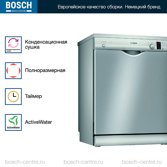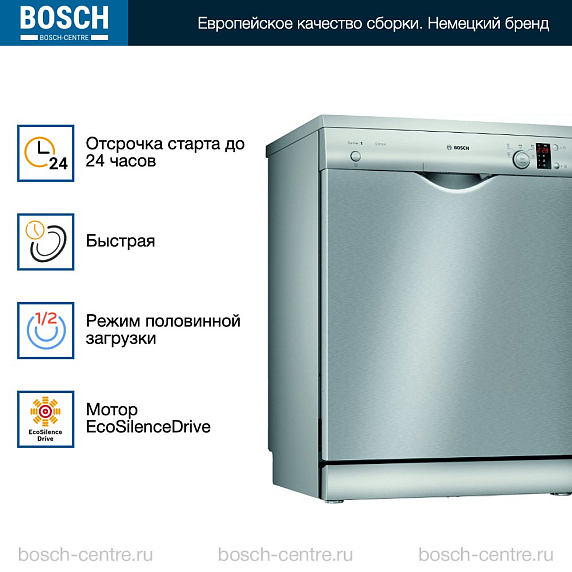 ** Все информационные материалы, представленные на Сайте, носят справочный характер и не могут в полной мере передавать достоверную информацию о свойствах, комплектации и характеристиках товара, включая цвета, размеры и формы. Фирма-производитель оставляет за собой право на внесение изменений в конструкцию, дизайн и комплектацию товара без предварительного уведомления. Перед оформлением Заказа Покупатель должен обратиться к Продавцу для уточнения свойств и характеристик Товара. Подробная информация о товаре указывается в инструкции и на упаковке товара. Используемое название в России: Бош SMS25AI01R