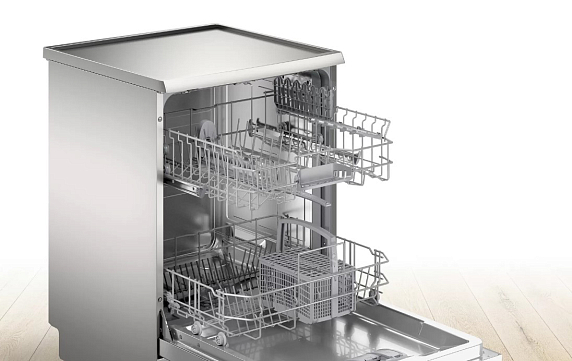 Посудомоечная машина Bosch SMS25AI01R представляет собой сочетание аккуратного дизайна и практичного подхода к организации кухонного пространства. Корпус из нержавеющей стали придает устройству современный, сдержанный облик, благодаря которому посудомоечная машина легко вписывается в разные стили интерьера. Открытая панель управления делает взаимодействие с устройством простым и наглядным.