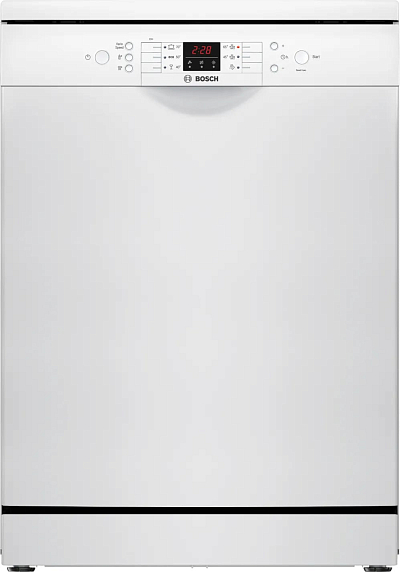 Посудомоечная машина Bosch SMS26DW00T представляет собой полноразмерное, отдельностоящее устройство белого цвета. Модель оснащена инновационным инверторным двигателем EcoSilence Drive, который обеспечивает тихую и эффективную работу. Способность уместить до 13 комплектов посуды делает эту модель идеальной для больших семей или вечеринок. Машина предлагает шесть стандартных программ и пять температурных режимов, включая два вида быстрой мойки при 45 и 65 градусах, экономичную, интенсивную, стекло при 40 градусах и предварительное ополаскивание.