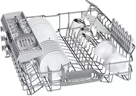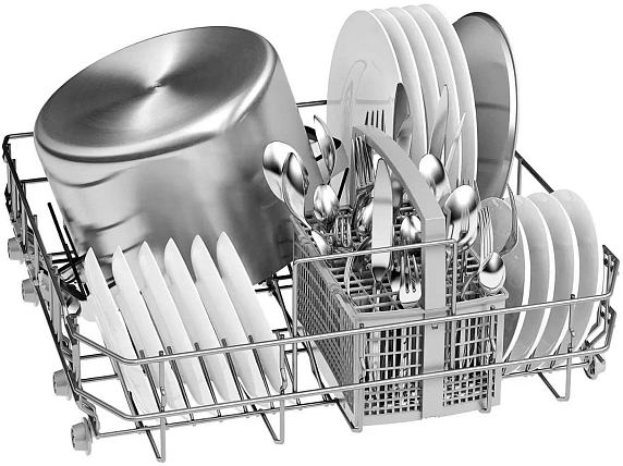 Посудомоечная машина Bosch SMS44DW01T характеризуется экономичным потреблением электричества и воды. За счет этого можно снизить затраты на оплату коммунальных услуг. Устройство осуществляет эффективное удаление жира, пригоревшей пищи и других сложных загрязнений с тарелок, столовых приборов, кастрюль и кружек. При необходимости включение модели можно перенести на удобное для пользователя время. Это обеспечивается посредством функции «Отсрочка запуска». Благодаря сушке конденсационного типа посуду не требуется протирать полотенцем после очищения. Выбор необходимых функций или установка температурного режима осуществляется посредством электронной панели управления. Устройство создает незначительный уровень шума в процессе работы, что обеспечивает дополнительное удобство при повседневной эксплуатации. Высоту положения корзины можно изменить благодаря специальной системе крепления. Это позволяет убирать в камеру даже крупные кастрюли, сковородки и другую посуду.
