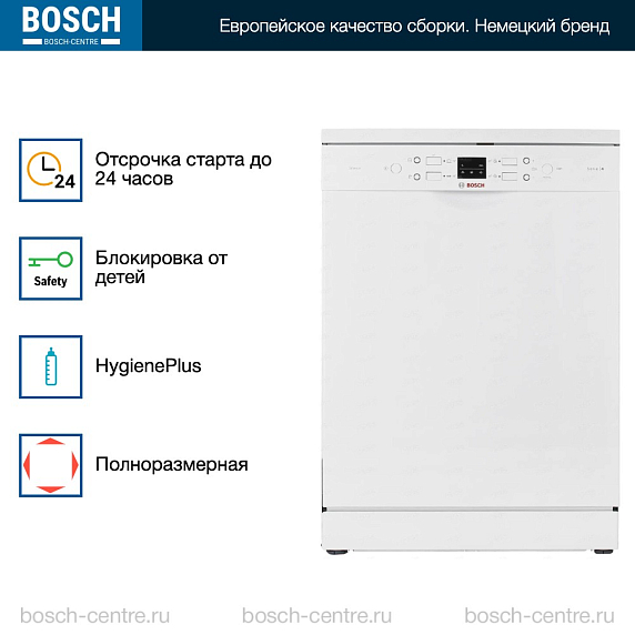 ** Все информационные материалы, представленные на Сайте, носят справочный характер и не могут в полной мере передавать достоверную информацию о свойствах, комплектации и характеристиках товара, включая цвета, размеры и формы. Фирма-производитель оставляет за собой право на внесение изменений в конструкцию, дизайн и комплектацию товара без предварительного уведомления. Перед оформлением Заказа Покупатель должен обратиться к Продавцу для уточнения свойств и характеристик Товара. Подробная информация о товаре указывается в инструкции и на упаковке товара. Используемое название в России: Бош SMS44DW01T