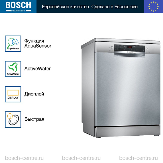 ** Все информационные материалы, представленные на Сайте, носят справочный характер и не могут в полной мере передавать достоверную информацию о свойствах, комплектации и характеристиках товара, включая цвета, размеры и формы. Фирма-производитель оставляет за собой право на внесение изменений в конструкцию, дизайн и комплектацию товара без предварительного уведомления. Перед оформлением Заказа Покупатель должен обратиться к Продавцу для уточнения свойств и характеристик Товара. Подробная информация о товаре указывается в инструкции и на упаковке товара. Используемое название в России: Бош SMS45DI10Q