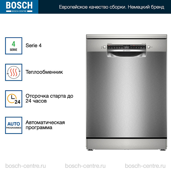 ** Все информационные материалы, представленные на Сайте, носят справочный характер и не могут в полной мере передавать достоверную информацию о свойствах, комплектации и характеристиках товара, включая цвета, размеры и формы. Фирма-производитель оставляет за собой право на внесение изменений в конструкцию, дизайн и комплектацию товара без предварительного уведомления. Перед оформлением Заказа Покупатель должен обратиться к Продавцу для уточнения свойств и характеристик Товара. Подробная информация о товаре указывается в инструкции и на упаковке товара. Используемое название в России: Бош SMS4ECI26M